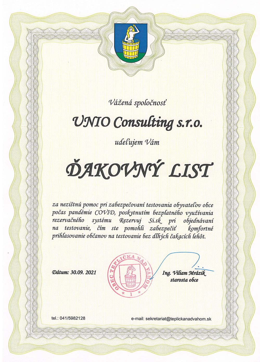 Poďakovanie starostu